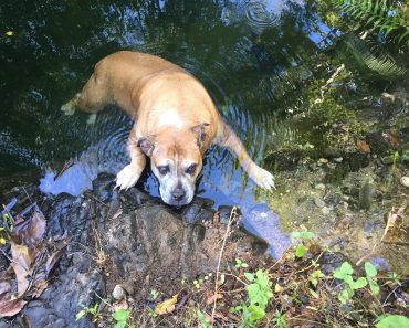 What you are about to read and see is an incredible, amazing story that actually happened. My husband and I took my dad to see some rock pools in a fairly secluded section of Mt Glorious National Park. As we walked along the creek bed, we noticed a disturbance in one of the deep pools ahead. Thinking it might be a roo or a platypus, we approached quietly, only to see this forlorn little face looking back. It was honestly the saddest sight.