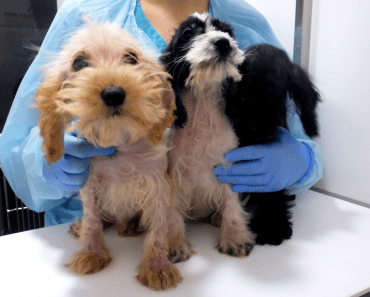 Olive, Emmy and Gus being treated for contagious skin disease sarcoptic mange
