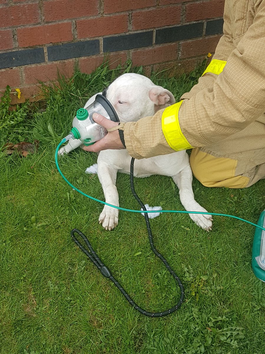 The young dog named Tammy was in the front room of the property when a fire started from a tumble dryer in the kitchen. After rescuing her, the Merseyside based firefighters gave Tammy extra oxygen outside with a specialist pet oxygen mask to help combat the impact of smoke inhalation on her airways.