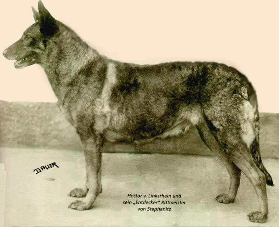Look no further than Horand von Grafrath. He is widely recognised as the first German Shepherd Dog and the genetic basis for modern German Shepherds. Oh, and he looks like this.