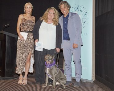 Romeo and his owner Steph meeting Kate Lawler and John Bishop at the RSPCA Awards