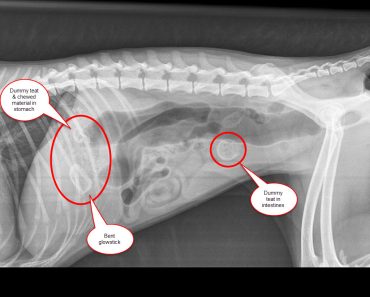 Poor Rosie was already very weak when she arrived at the hospital and vets were uncertain whether she would survive an emergency operation. But it was her only chance of survival. Vets were shocked when they removed the items and realised what they were – the dummy teats had clearly been inside her for some time.