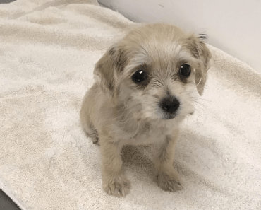 The small, male puppy – thought to be a border terrier cross – initially had some damage to his paws where the hairband had cut off his circulation but has now recovered and seems to be moving well.